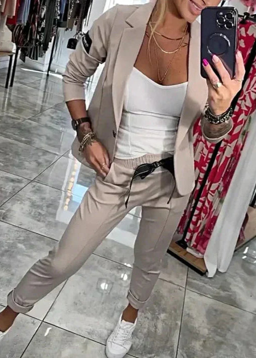 Oriane associe un blazer fluide et doux au toucher, qui allonge la silhouette, à un pantalon jogger chic à taille ajustable. Résultat : une tenue impeccable du matin au soir. Légère, respirante et agréable à porter, elle suit chacun de vos mouvements sans jamais vous gêner.